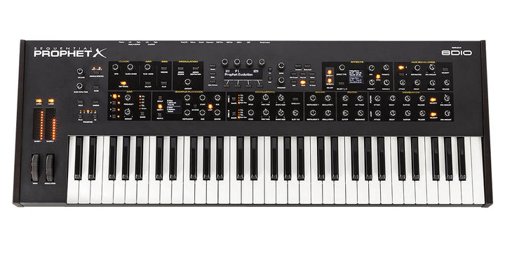 With loads of sonic firepower and personality, a five-octave, premium-quality, semi-weighted keyboard with velocity and channel aftertouch, an integrated power supply, MIDI USB support, and three crisp OLED displays, the Prophet X fits into any music rig or gig - in the studio or on the road.